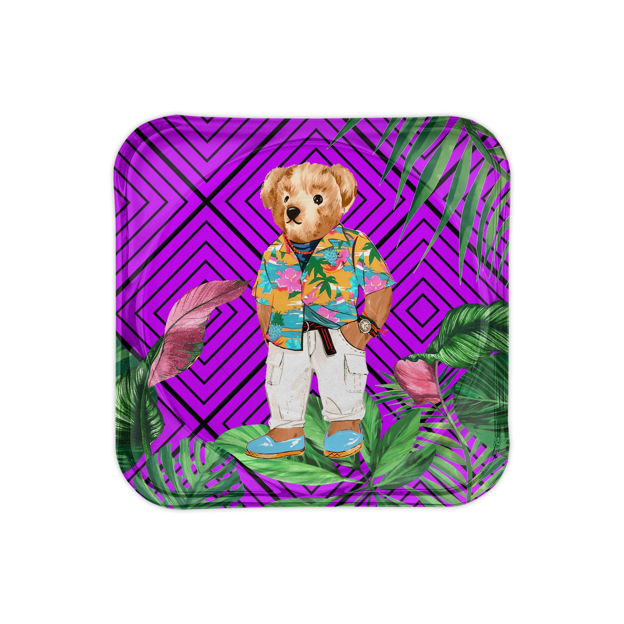 Summer Purple Teddy Bear Cam Bardak Altlığı & Mum Tabağı