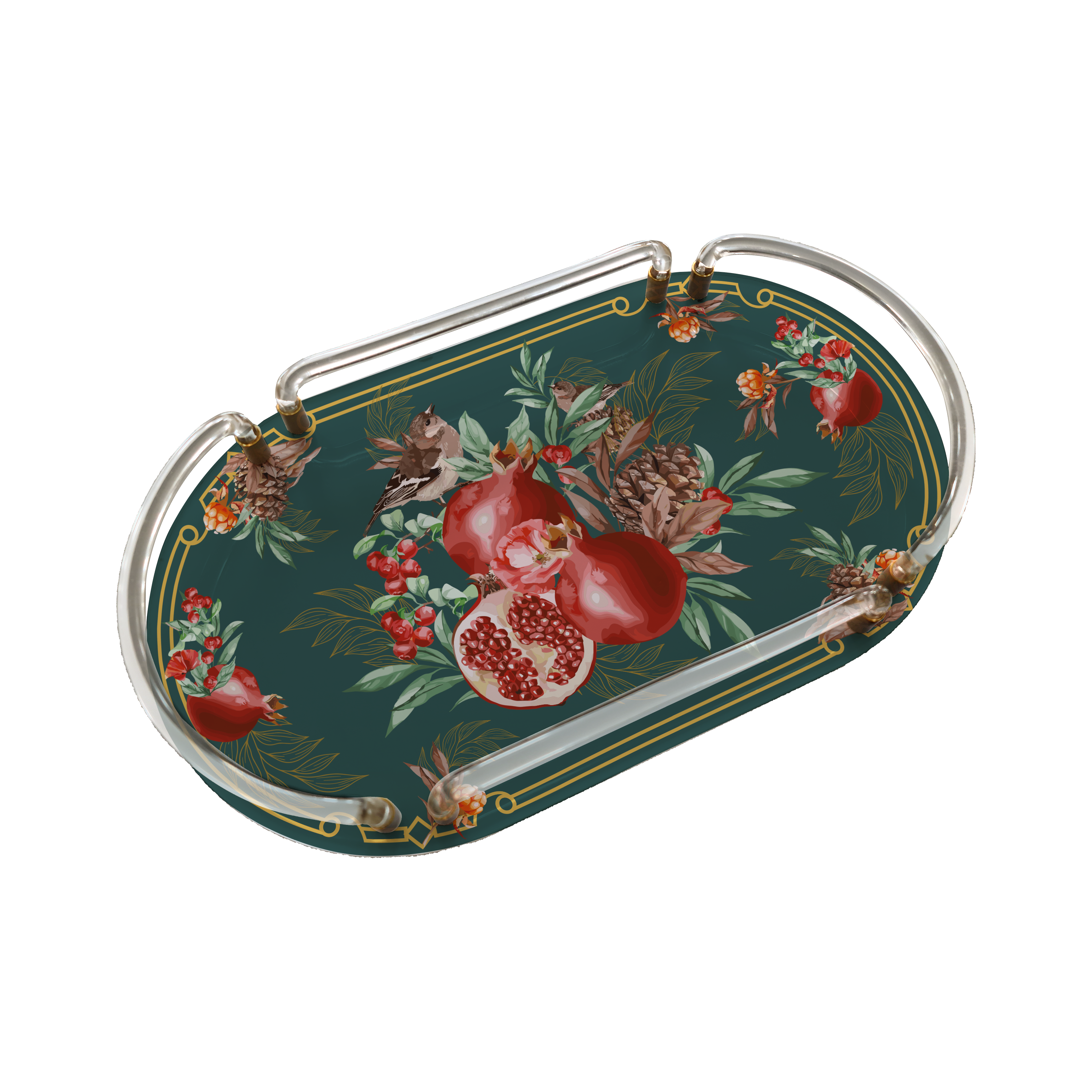 Pomegranate Green Oval Pleksi Tepsi